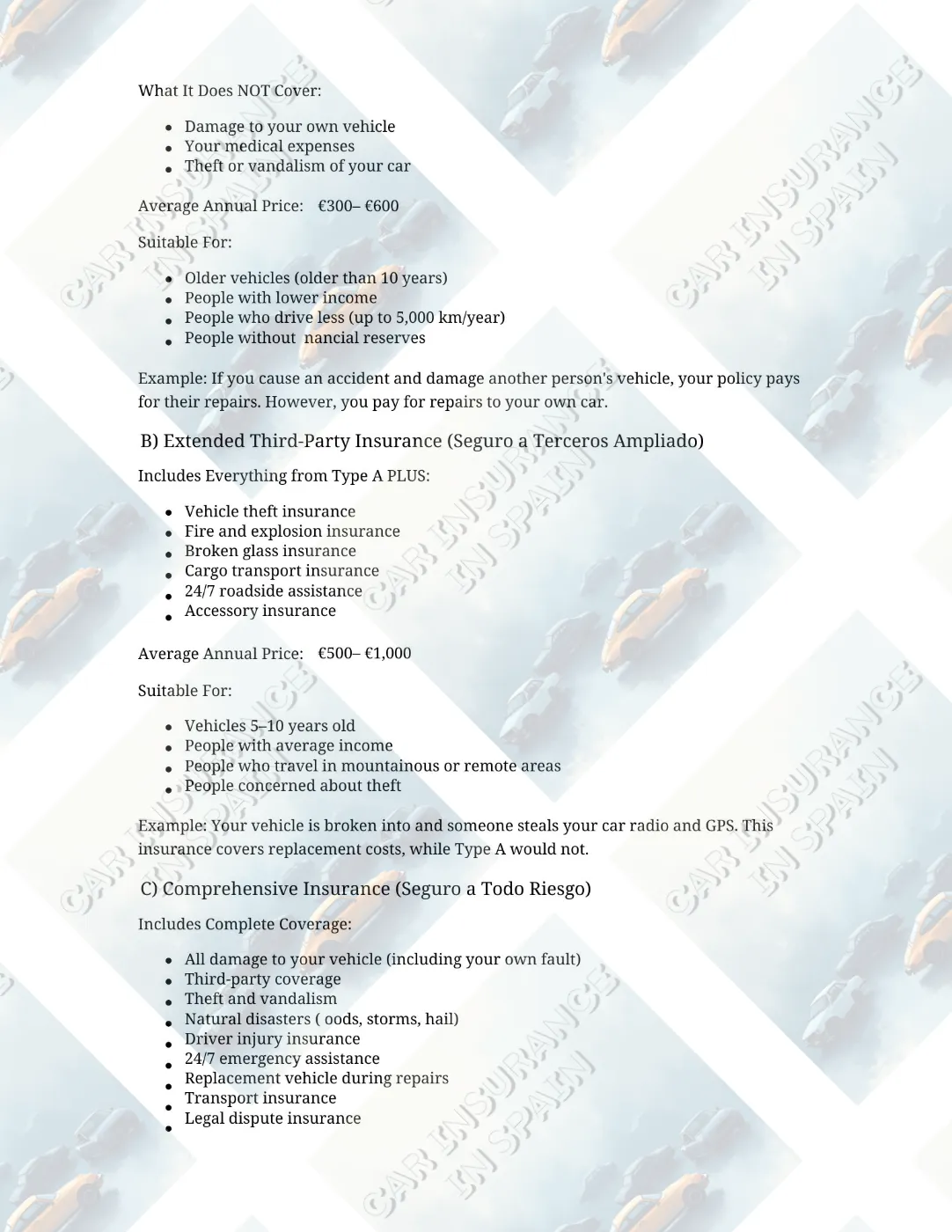 určeno pro cizince, kteří si pojišťují vozidlo ve Španělsku. Dokument je formátován jako hotová e-kniha ve formátu PDF s: